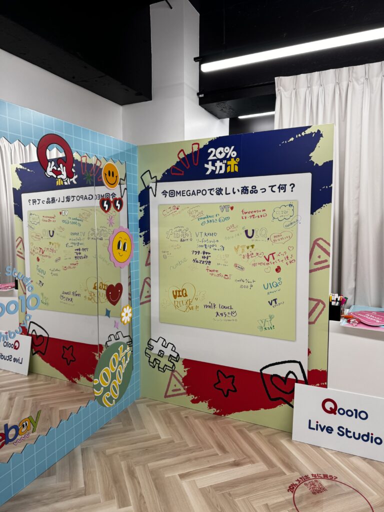 PORTFOLIO事例紹介 Qoo10メガポポップアップストア2024年4月、Qoo10ライブストア(Qoo10 Studio)にて、20%メガポを開催いたしました。 日程: 2024年4月 施設名: Qoo10Live Studio(渋谷) 主催: Qoo10.jp